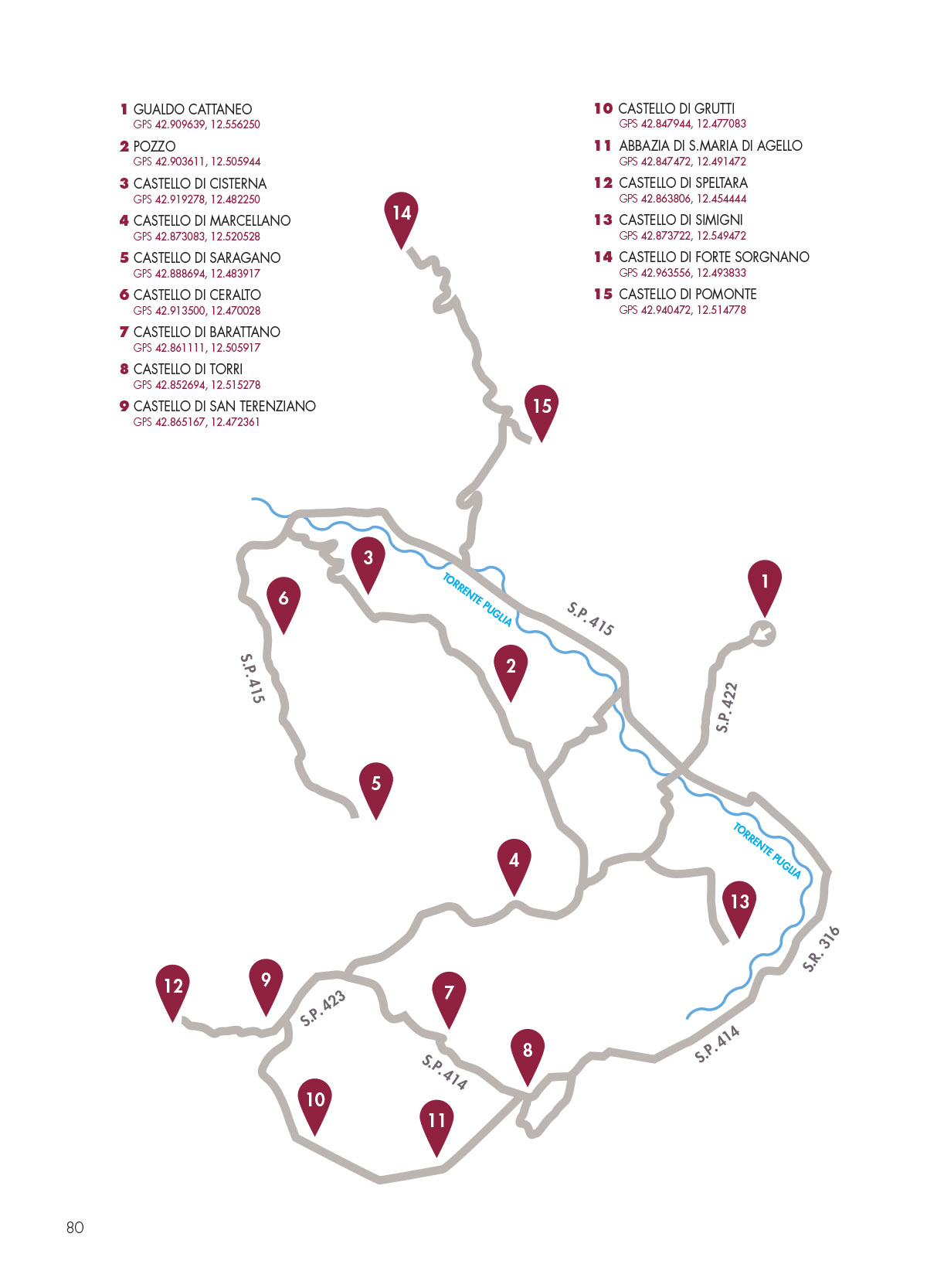 Dopo la visita di Gualdo e della sua Rocca, prendete la direzione di Pozzo che, immerso nel verde degli ulivi, sovrasta la valle del fiume Puglia. L’impianto architettonico del castello offre singolari scorci medievali. Proseguendo, il castello di Cisterna (XIII sec.), su di un colle sopra il Puglia, si presenta in discrete condizioni, con l’alta torre medievale ben visibile, accanto alla quale sorge un nucleo abitato di origine ottocentesca. Al confine tra i comuni di Gualdo Cattaneo e Giano dell’Umbria incontrerete il castello di Marcellano, risalente al XII secolo. Durante il periodo natalizio vi si svolge un presepe vivente che ogni anno coinvolge gli abitanti dell’intero borgo in allestimenti e scene di vita tradizionale dell’epoca medievale e decine di figuranti in costume, botteghe di artigiani, taverne con vino caldo ed eccellenze gastronomiche locali. Al calar del pallido sole di dicembre, in uno scenario unico, ha luogo la rappresentazione della Natività.